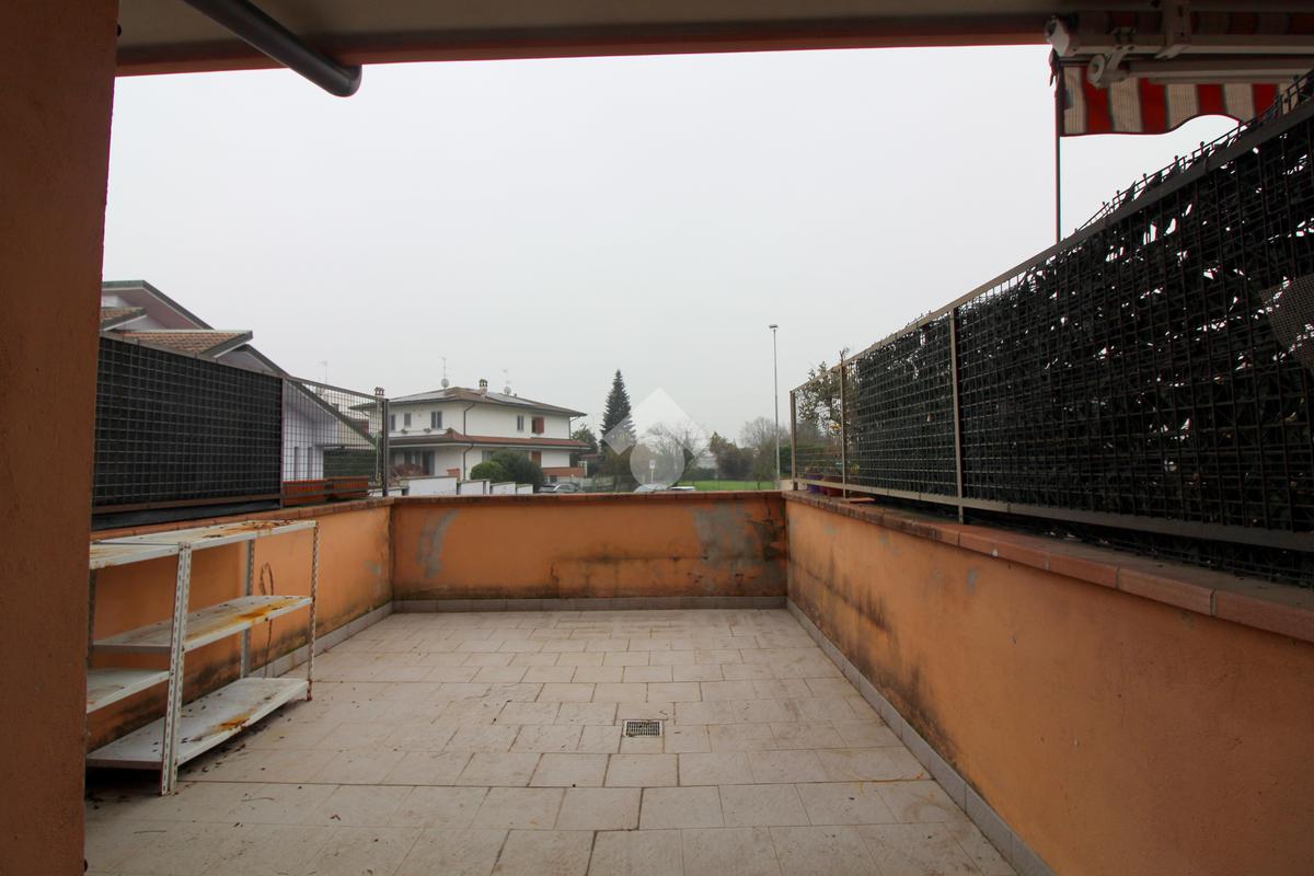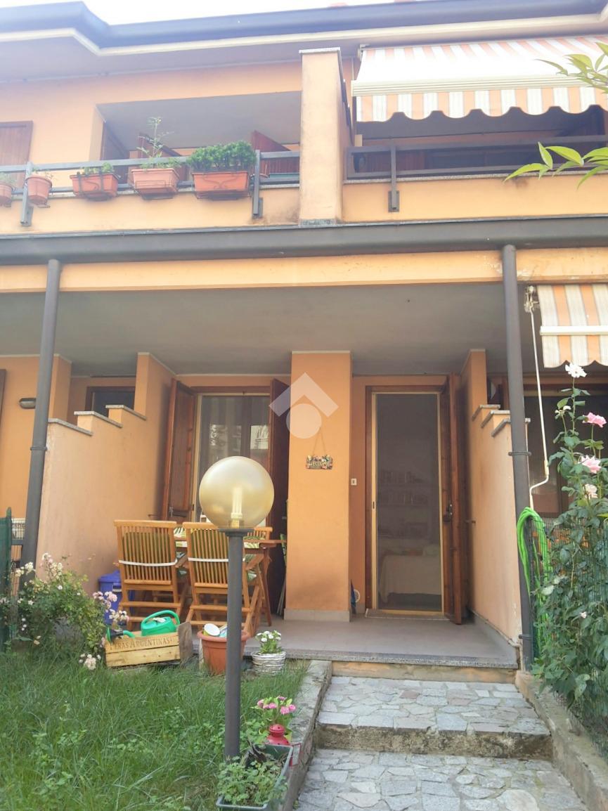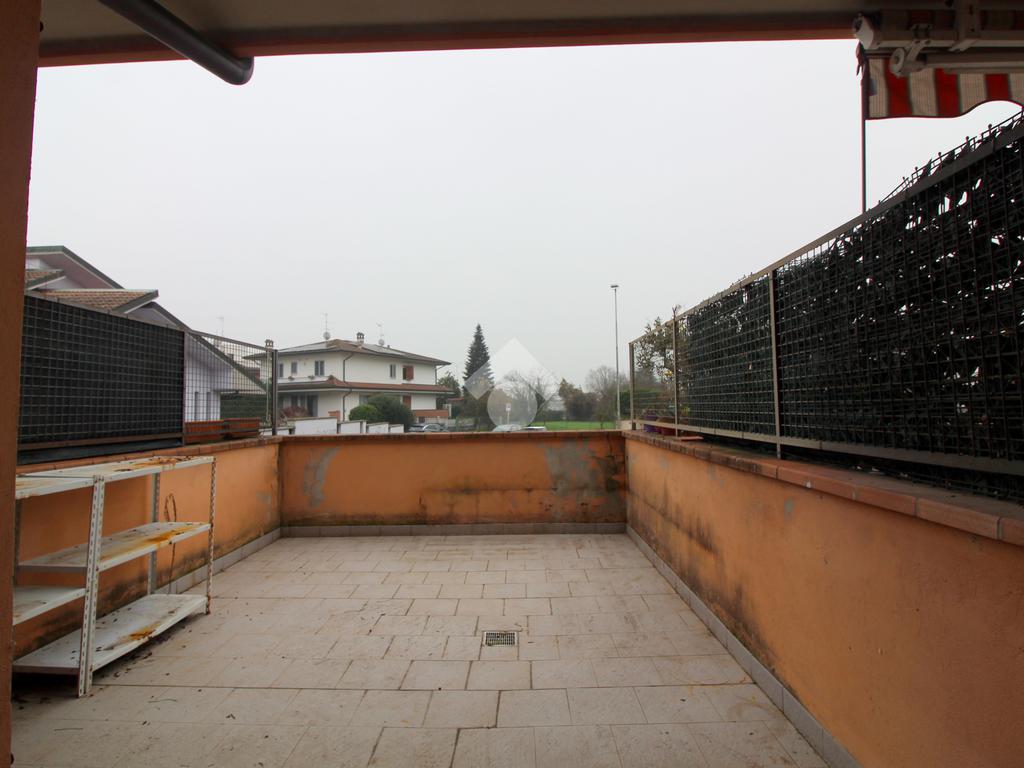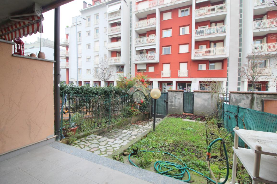 I punti di forza di questa soluzione sono il giardinetto privato antistante l'abitazione, collegato direttamente al soggiorno, e l'ampio terrazzo sul retro con accesso dalla camera.